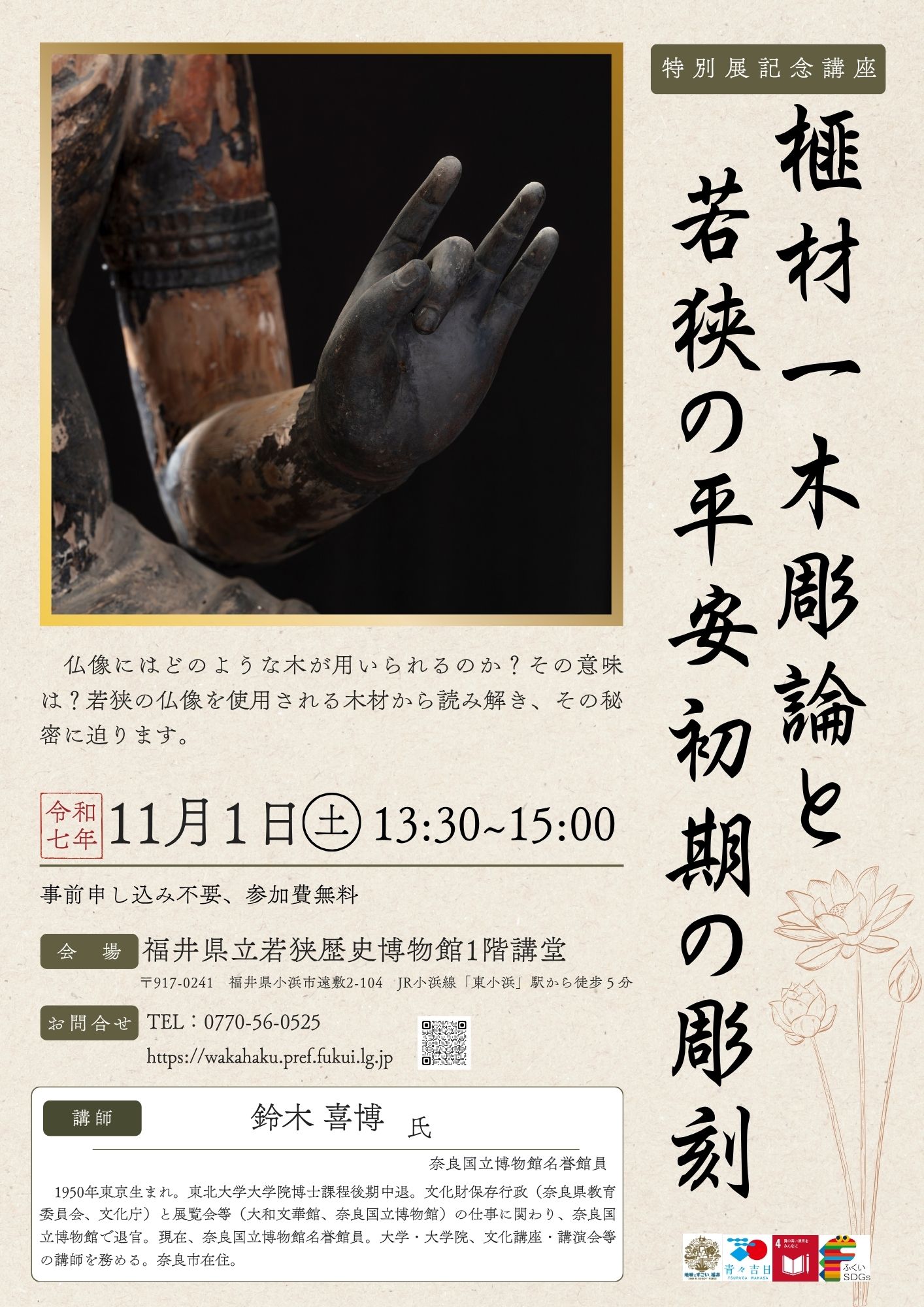 トップ > お知らせ > 講座・体験情報 > わかはく講座 > 【特別展記念講演】 榧材一木彫論と若狭の平安初期の彫刻
